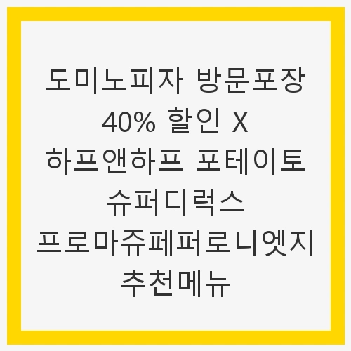 피자는 많은 이들이 사랑하는 음식입니다. 치즈가 쭉 늘어나는 모습, 다양한 토핑이 어우러진 색감, 그리고 바삭한 크러스트는 그 자체로 행복감을 안겨줍니다. 주말, 가족과 함께하는 시간에 피자를 선택하는 것은 이제 전통처럼 되어버렸죠. 특히 도미노피자는 그 다양한 메뉴와 풍부한 할인 혜택 덕분에 피자 사랑자들 사이에서 높은 인기를 끌고 있습니다. 이번 블로그에서는 도미노피자의 '방문포장 40% 할인'과 함께 추천 메뉴인 '하프앤하프 포테이토 슈퍼디럭스 프로마쥬페퍼로니엣지'에 대해 이야기해보겠습니다.