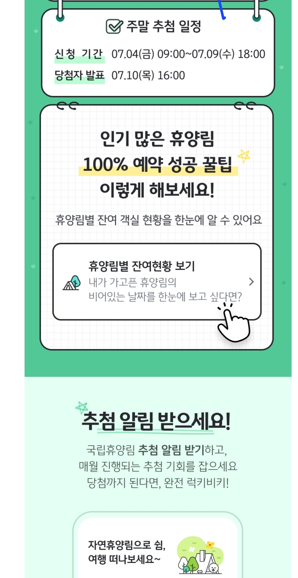휴양림마다 예약 시작 기간이 다를 수 있으니, 가고 싶은 곳의 정보를 미리 확인하는 것도 잊지 마세요