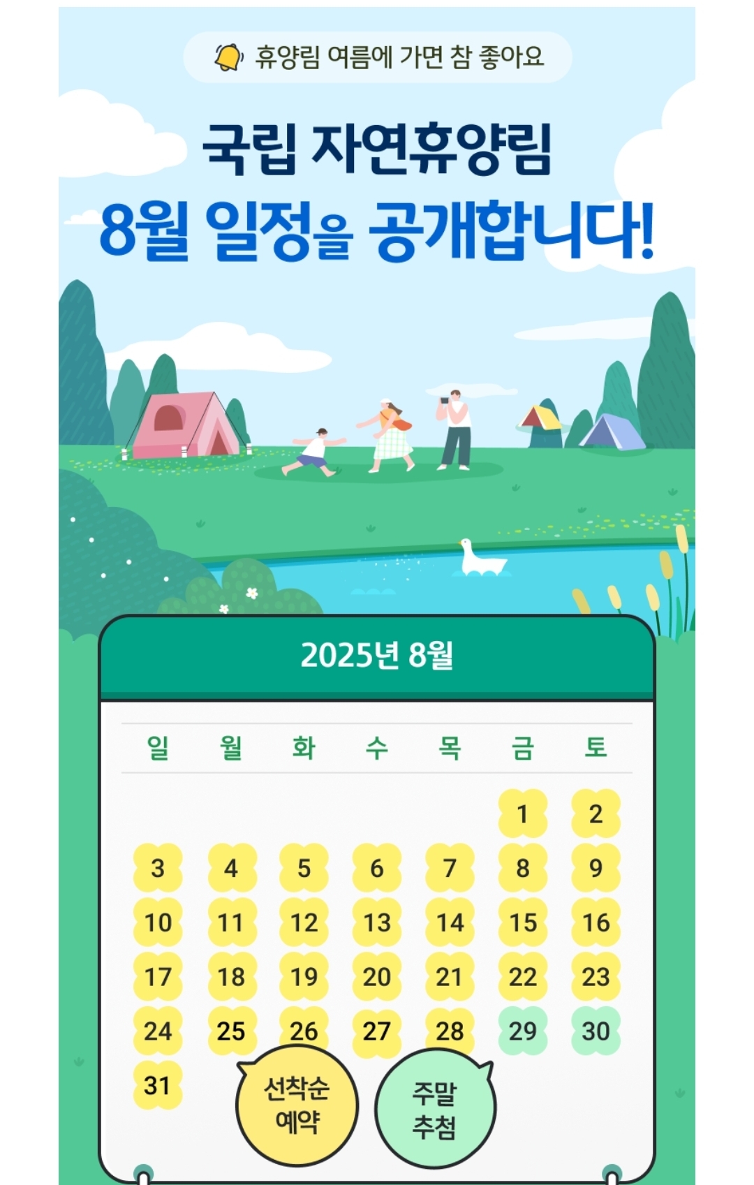 2025년 국립자연휴양림의 주요 예약 일정을 알려드릴게요. 특히 성수기 추첨제는 미리 알아두면 좋아요!